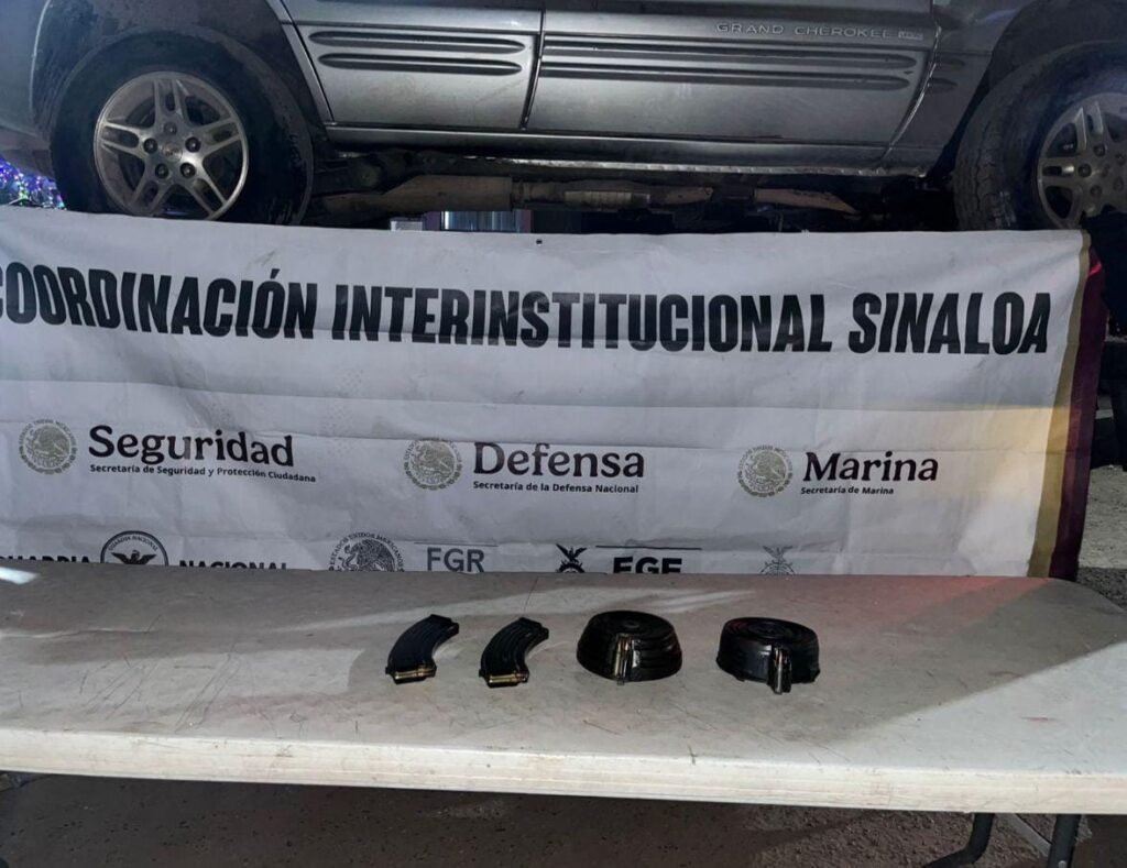 Culiacán, Sinaloa.— El Grupo Interinstitucional aseguró una camioneta blindada, cargadores y municiones durante un operativo de seguridad realizado en la sindicatura de Aguaruto, en el municipio de Culiacán, informaron autoridades estatales.