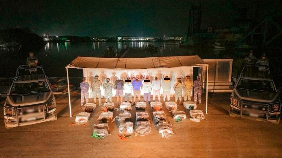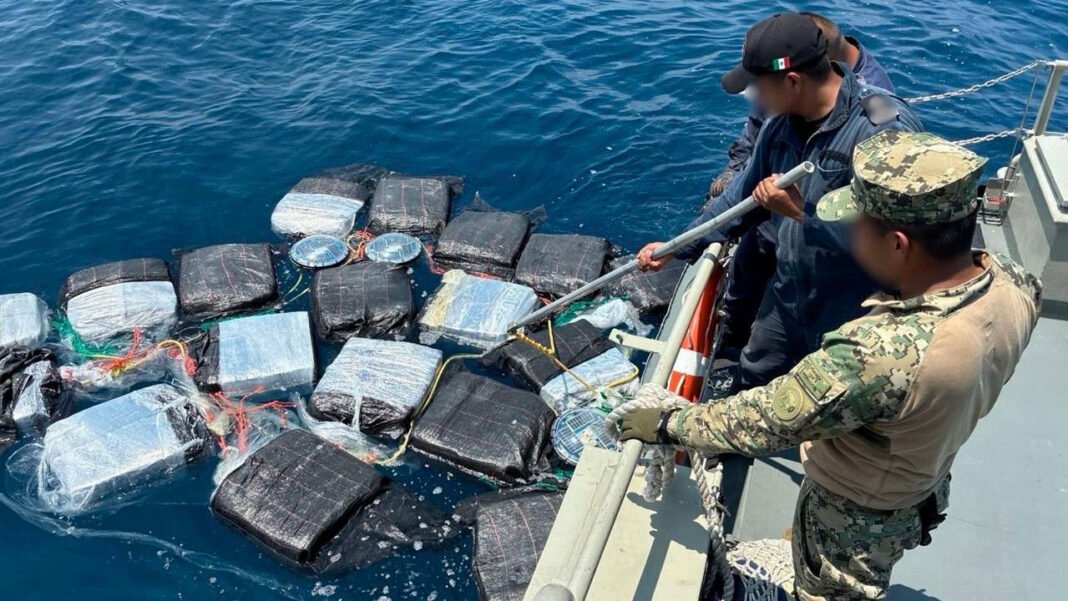 Ciudad de México.– Autoridades federales aseguraron aproximadamente 904 kilos de presunta cocaína y detuvieron a seis personas de nacionalidad extranjera durante un operativo en aguas del Océano Pacífico, frente a costas de Chiapas.