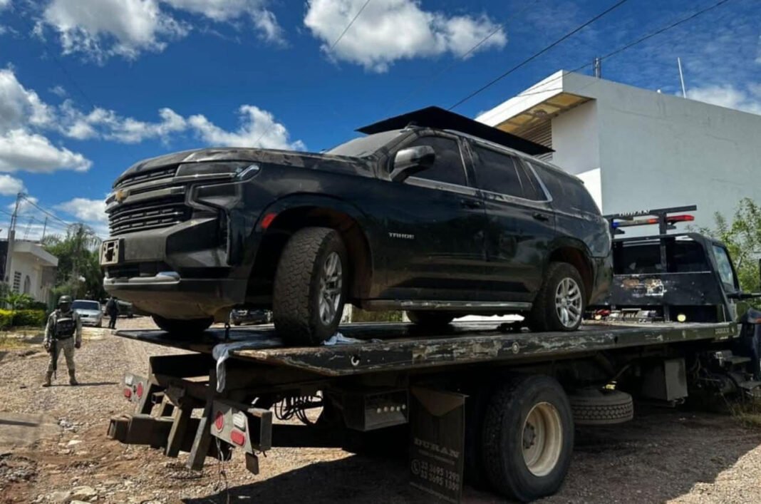 Durante recorridos de vigilancia, elementos del GOES, en coordinación con Sedena, Guardia Nacional, Marina, SSPC, FGR y FGE, detectaron el vehículo con neumáticos ponchados y blindaje artesanal, además de una torreta hidráulica para arma de alto poder.
