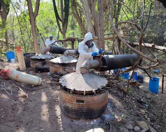 En Culiacán, autoridades federales localizaron e inhabilitaron un laboratorio clandestino dedicado a la elaboración de drogas sintéticas, donde se aseguraron 400 litros y 295 kilogramos de sustancias químicas utilizadas para la producción de metanfetamina. En el sitio también fueron decomisados cuatro reactores de síntesis orgánica, cuatro condensadores y siete tanques de gas LP.