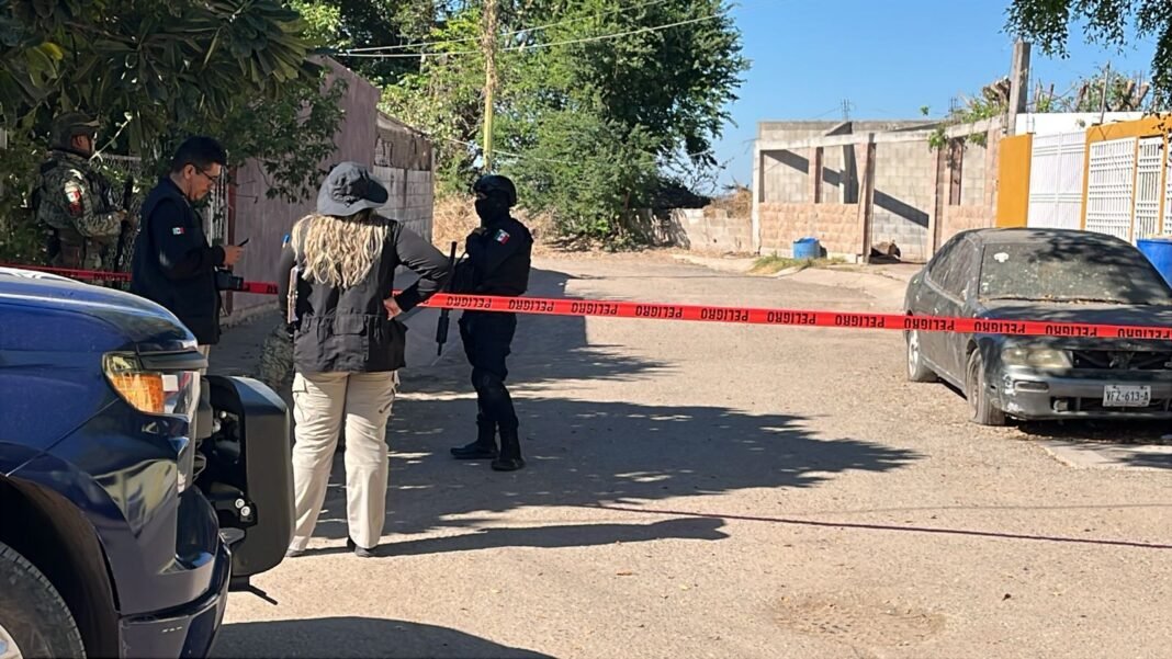 La zona fue acordonada con cinta roja mientras elementos de la Policía de Investigación y del Ejército Mexicano resguardaban el perímetro.
