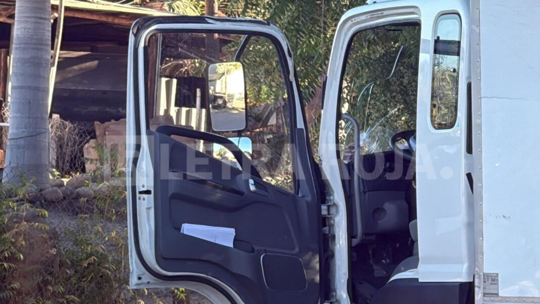 El tractocamión presentó impactos de arma de fuego en el cristal y la carrocería