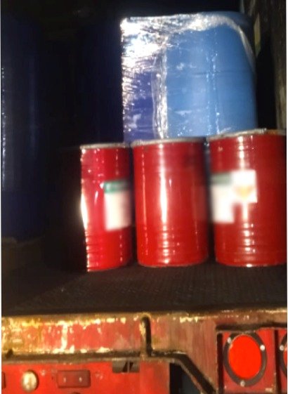 Todas estas sustancias son consideradas productos químicos esenciales que pueden utilizarse en la producción de drogas sintéticas. El conductor y el material fueron asegurados de inmediato.
