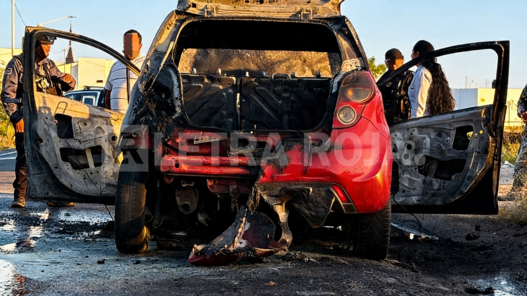El siniestro ocurrió a pocos metros del entronque con la carretera Internacional México 15, donde la unidad, un Spark, fue consumida en su totalidad por el fuego.