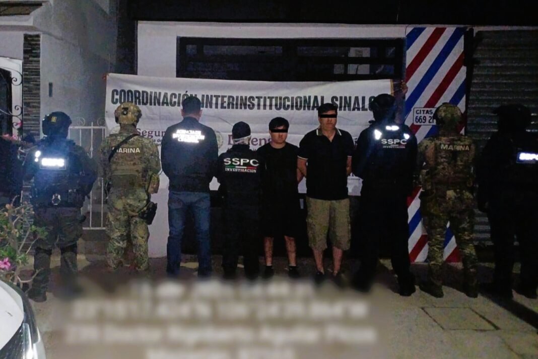Ciudad de México.- Elementos de la Secretaría de Marina (Semar), la Secretaría de Seguridad y Protección Ciudadana (SSPC) y la Fiscalía General de la República (FGR) detuvieron en Mazatlán, Sinaloa, a Efraín “N” y Jesús “N”, identificados como presuntos integrantes de una célula delictiva que opera en la región, como resultado de labores de inteligencia e intercambio de información.