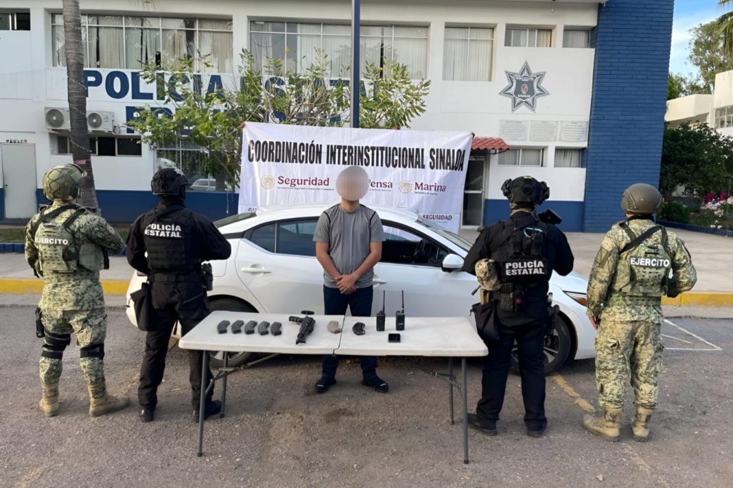 Culiacan, Sinaloa.- Una persona fue detenida por el Grupo Interinstitucional durante recorridos de seguridad y prevención del delito en la colonia Libertad, al sur poniente de Culiacán, al ser sorprendida en posesión de armamento, municiones y equipo de radiocomunicación.
