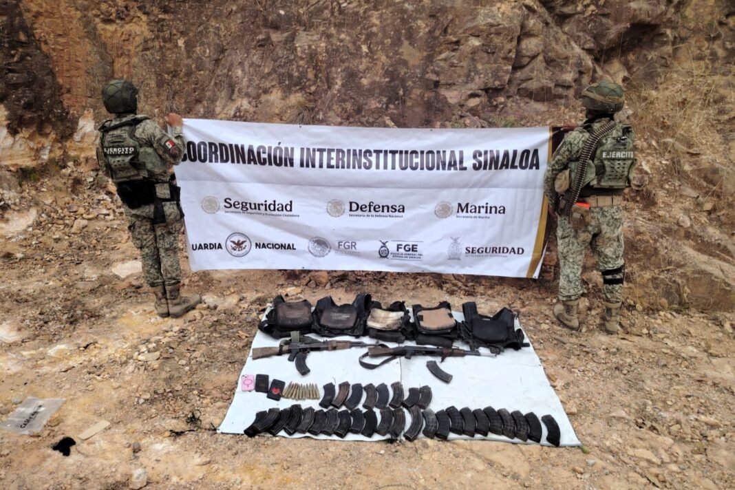 Concordia, Sinaloa.- En un operativo conjunto realizado en el municipio de Concordia, elementos del Ejército Mexicano, la Guardia Nacional, la Secretaría de Marina y otras autoridades, detuvieron a un civil y aseguraron un arsenal, incluyendo armas largas, más de mil cartuchos y equipo táctico, tras repeler una agresión de presuntos integrantes de la delincuencia organizada.