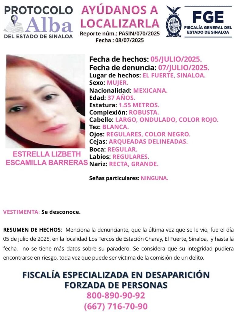 Estrella Lizbeth contaba con una ficha de búsqueda por parte de la Comisión Estatal de Búsqueda de Personas, así como una ficha de Protocolo Alba emitida por la Fiscalía de Sinaloa.