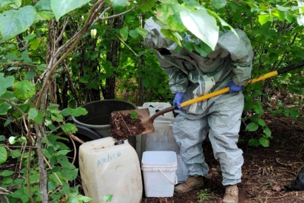 El personal militar descubrió tres instalaciones clandestinas donde los narcotraficantes almacenaban precursores químicos para fabricar metanfetaminas y otras drogas de alto impacto en la región.