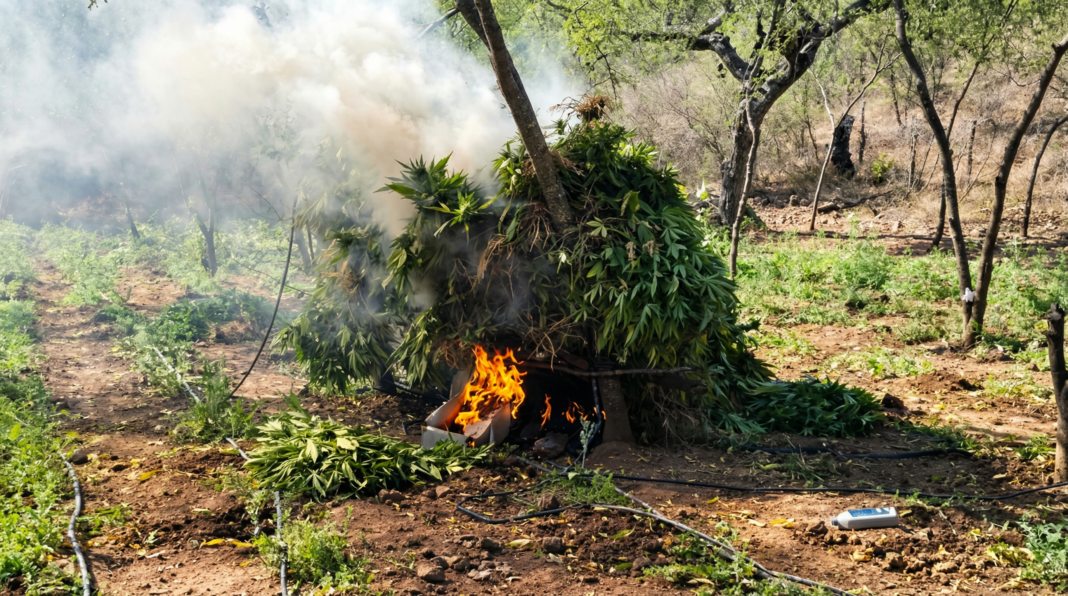 Tras el aseguramiento de los puntos señalados, se dio vista a la Fiscalía General de la República, procediéndose a la destrucción de los cultivos y del secadero por parte del personal castrense, conforme a los protocolos establecidos.