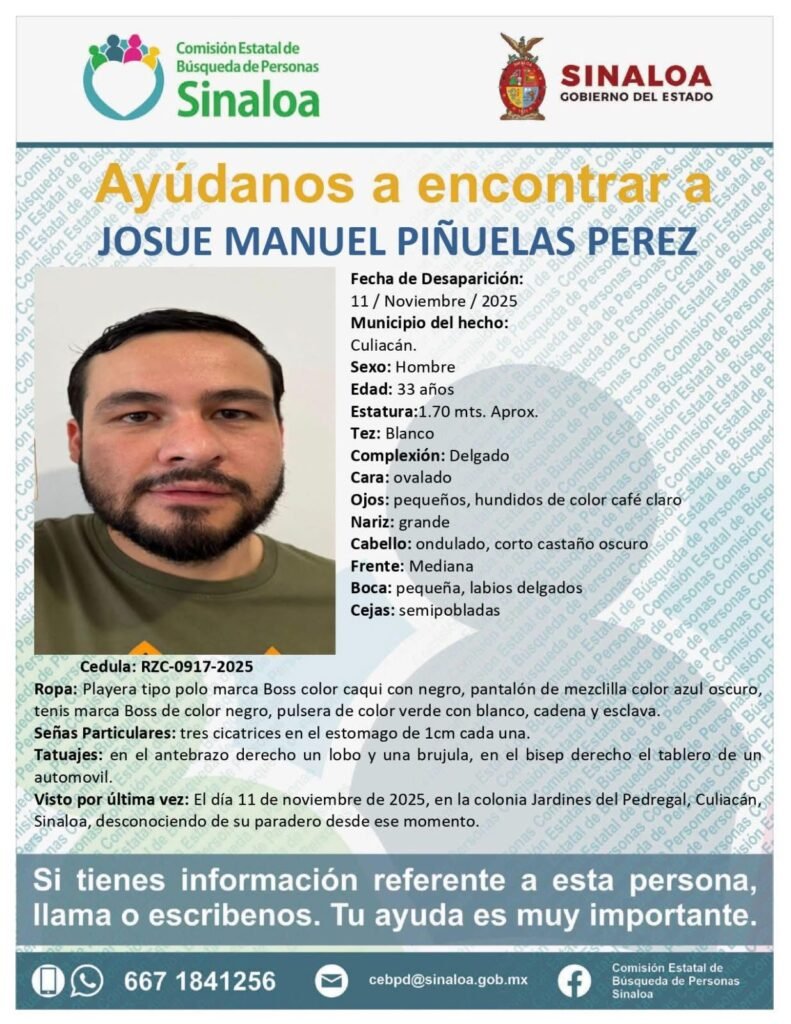 De acuerdo con los reportes, Josue Manuel se encontraba en su negocio, ubicado sobre el bulevar Constelaciones y Ámbar, cuando sujetos armados ingresaron al lugar, lo sometieron y se lo llevaron con rumbo desconocido. Tras el hecho, se emitió una ficha de búsqueda a través de la Comisión Estatal de Personas Desaparecidas.