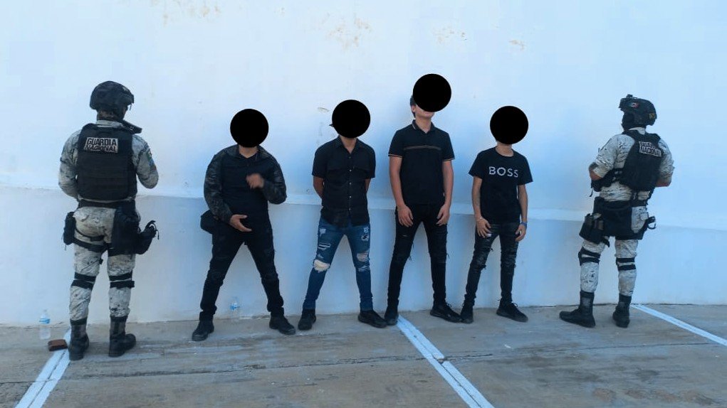 Los cuatro detenidos, en su mayoría jóvenes, fueron capturados después de abrir fuego contra los elementos de la Guardia Nacional, quienes repelieron la agresión y lograron su sometimiento.