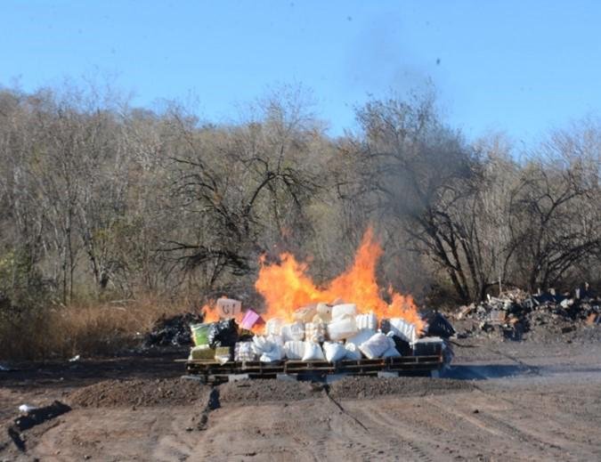 Durante la jornada se incineró una tonelada 756 kilos de clorhidrato de metanfetamina, además de más de una tonelada de marihuana. También fueron destruidos casi 60 kilos de metanfetamina adicional, más de 400 gramos de cocaína y más de 700 litros de droga líquida.