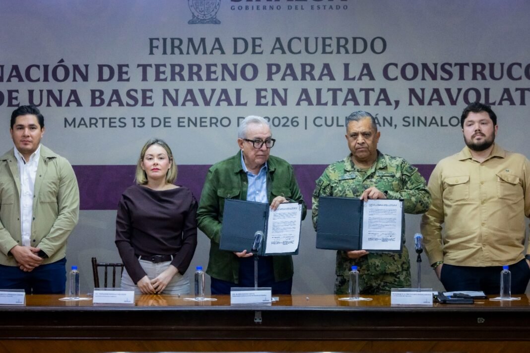Culiacán, Sinaloa.- El gobernador de Sinaloa, Rubén Rocha Moya, firmó un acuerdo de donación de 15 hectáreas de terreno a la Secretaría de Marina, con el objetivo de concretar la instalación de un Sector Naval en Nuevo Altata, en el municipio de Navolato.