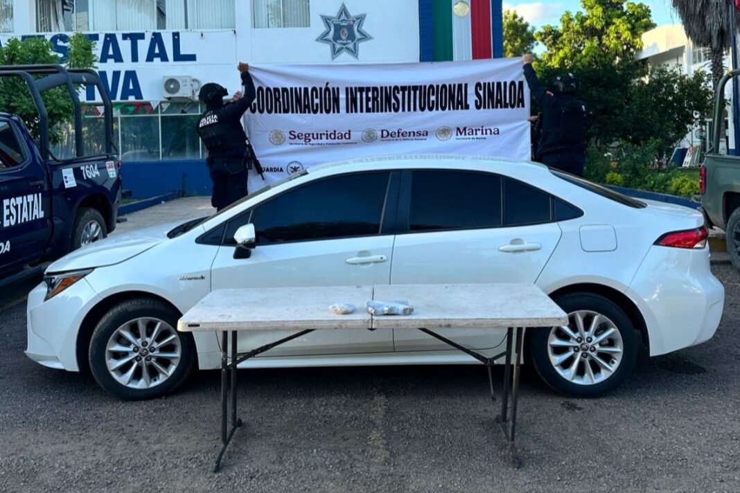 Culiacán, Sinaloa.- Autoridades estatales y federales aseguraron un vehículo Toyota Corolla con tres cargadores abastecidos para arma larga tipo AK-47 y una bolsa con dosis de hierba verde similar a la marihuana en la zona rural de Culiacán.