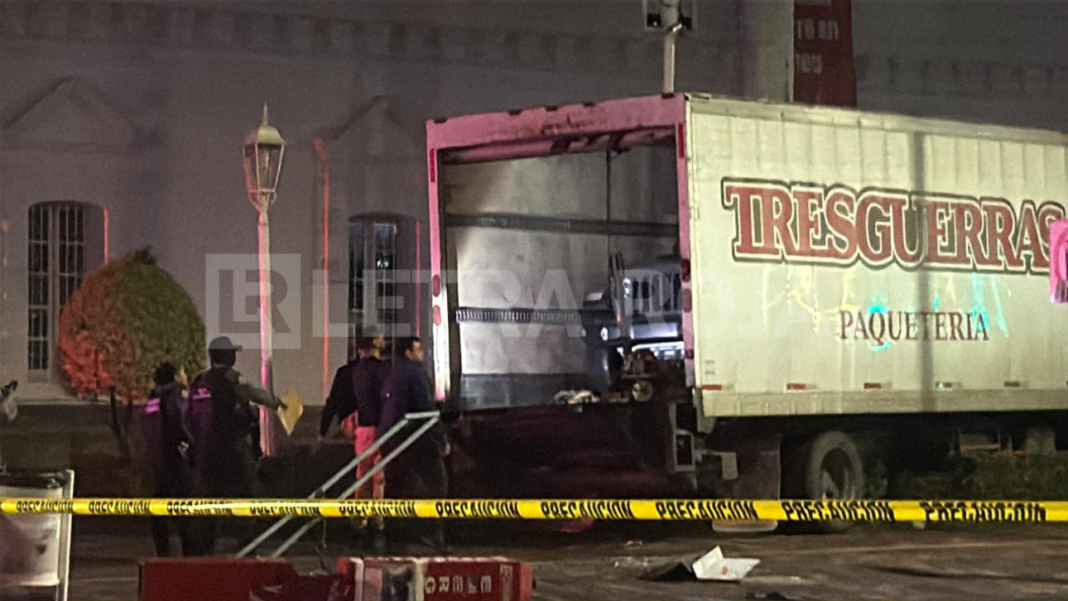 Tras intentar escapar, Agustín F. perdió el control del camión, que terminó sobre la banqueta y jardinera del atrio, causando daños en plantas de ornato y barandales.