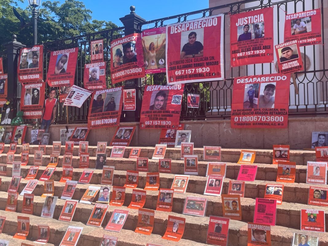 Culiacán, Sinaloa.– El colectivo Sabuesos Guerreras inauguró el memorial “Perdón por no haberte abrazado más fuerte, pensé que te volvería a ver”, un mural instalado a un costado de la Catedral que reúne más de 216 rostros de personas desaparecidas.