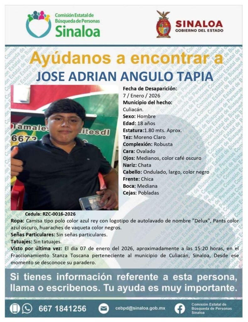 El joven fue secuestrado el 07 de enero de 2026, alrededor de las 15:20 horas, en Stanza Toscana, sin que desde entonces se tuviera información sobre su paradero.
