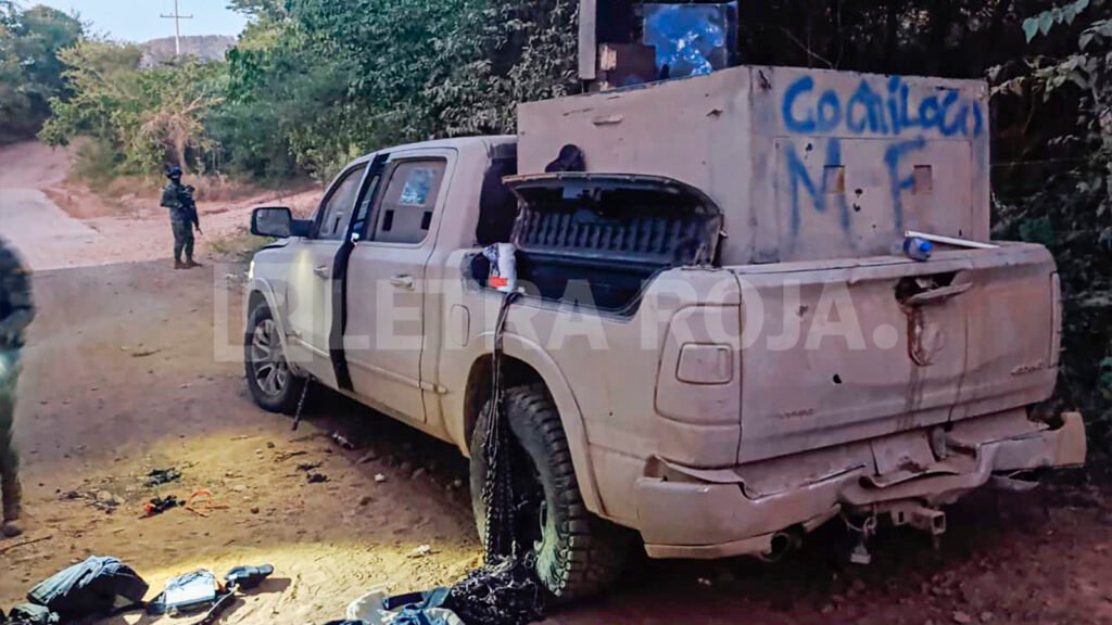 A continuación, las autoridades se dirigieron al poblado de El Pozo, donde localizaron un vehículo con blindaje, torreta artesanal y equipo táctico. Además, en el área, encontraron material para la fabricación de artefactos explosivos improvisados, lo que indicó la peligrosidad del lugar.