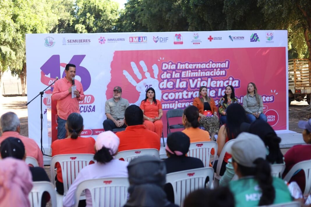 Navolato, Sinaloa.- El secretario del Ayuntamiento de Navolato, en representación del presidente municipal, dio inicio oficial a la campaña internacional 16 Días de Activismo contra la Violencia de Género.