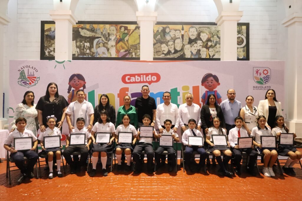 Navolato, Sinaloa.- Más de una docena de niñas y niños del municipio de Navolato recibieron reconocimientos y estímulos económicos por su participación en el Cabildo Infantil 2026, un ejercicio cívico que permitió a la niñez presentar iniciativas sobre problemas sociales como el ciberacoso, la inclusión, el deporte, el cuidado del medio ambiente, innovación y tecnología, derechos de los animales y la violencia infantil.