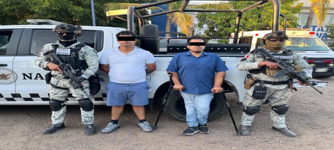 Culiacán, Sinaloa— En un operativo del Gabinete de Seguridad, elementos de la Guardia Nacional y del Ejército Mexicano detuvieron a dos personas que se desplazaban en un Volkswagen Vento rojo, cerca de una tienda de conveniencia ubicada sobre el bulevar Universitarios, entre Enrique Sánchez Alonso y Álvaro Obregón, en Culiacán.