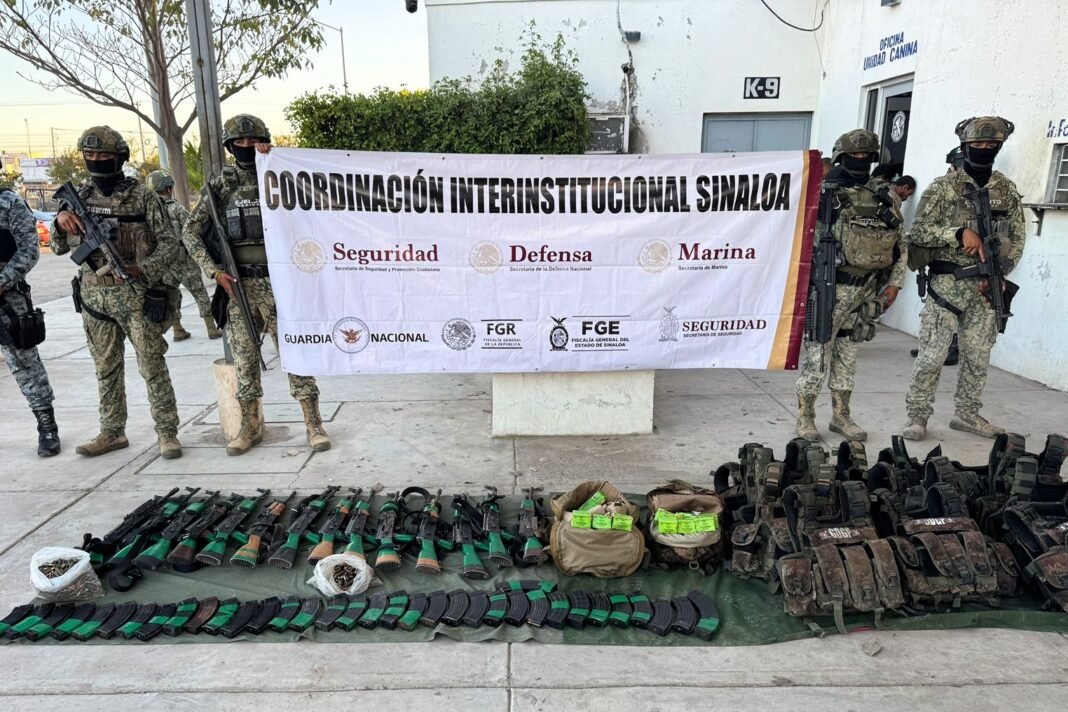 Escuinapa, Sinaloa.- Un reporte ciudadano que alertó sobre la presencia de un grupo armado en la comunidad de Loma Grande derivó en un operativo federal que culminó con la detención de 14 personas y el aseguramiento de un importante arsenal, luego de que elementos de seguridad fueran agredidos en el lugar.