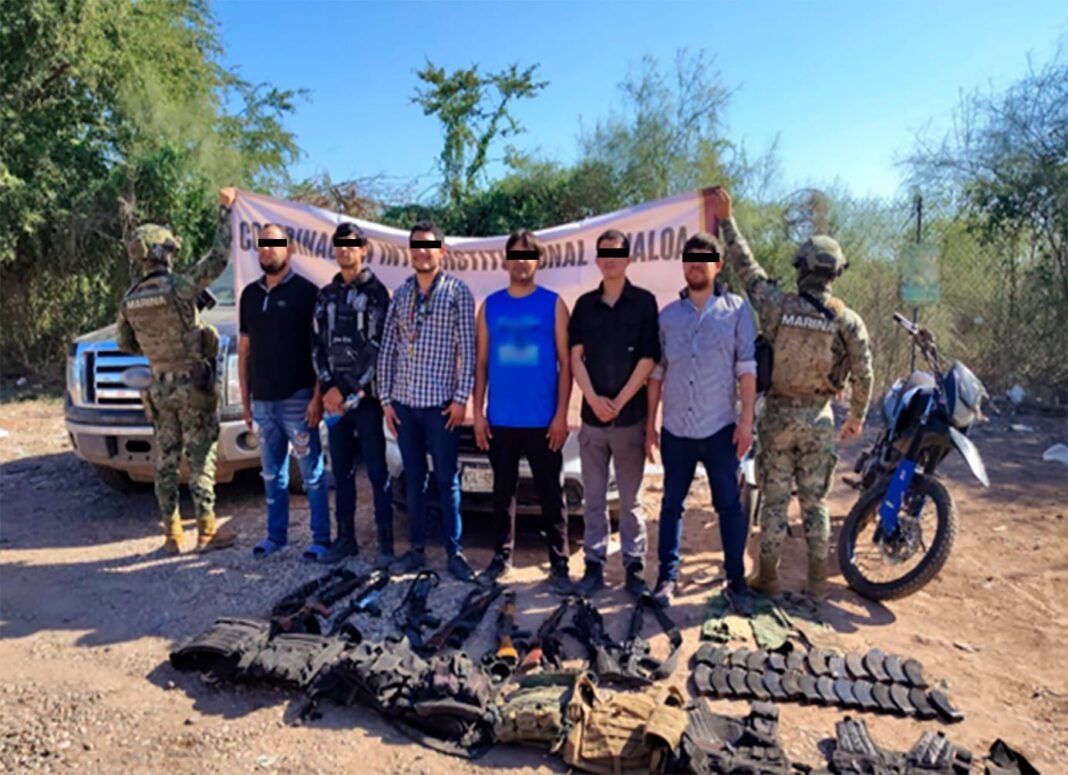 En el municipio de Navolato, en el poblado Las Trancas, fueron detenidas seis personas, a quienes se les aseguraron nueve armas largas, 26 cargadores, ocho chalecos tácticos, siete pares de placas balísticas, cinco vehículos —tres con reporte de robo— y dos motocicletas.