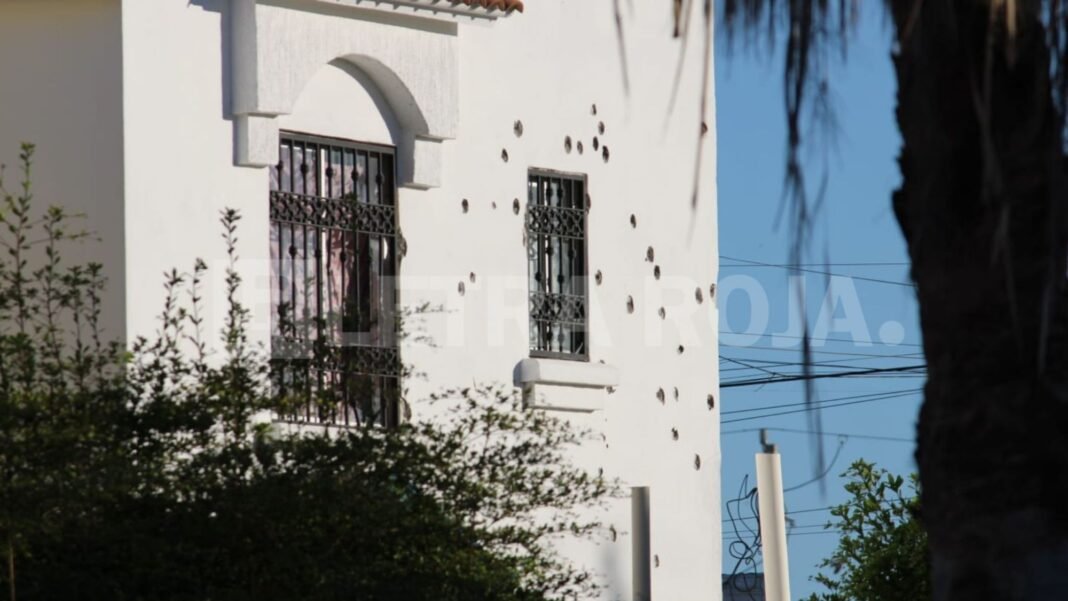 De acuerdo con versiones recabadas en el lugar, sujetos armados arribaron en al menos tres vehículos, descendieron y realizaron múltiples detonaciones contra la vivienda, para después huir.