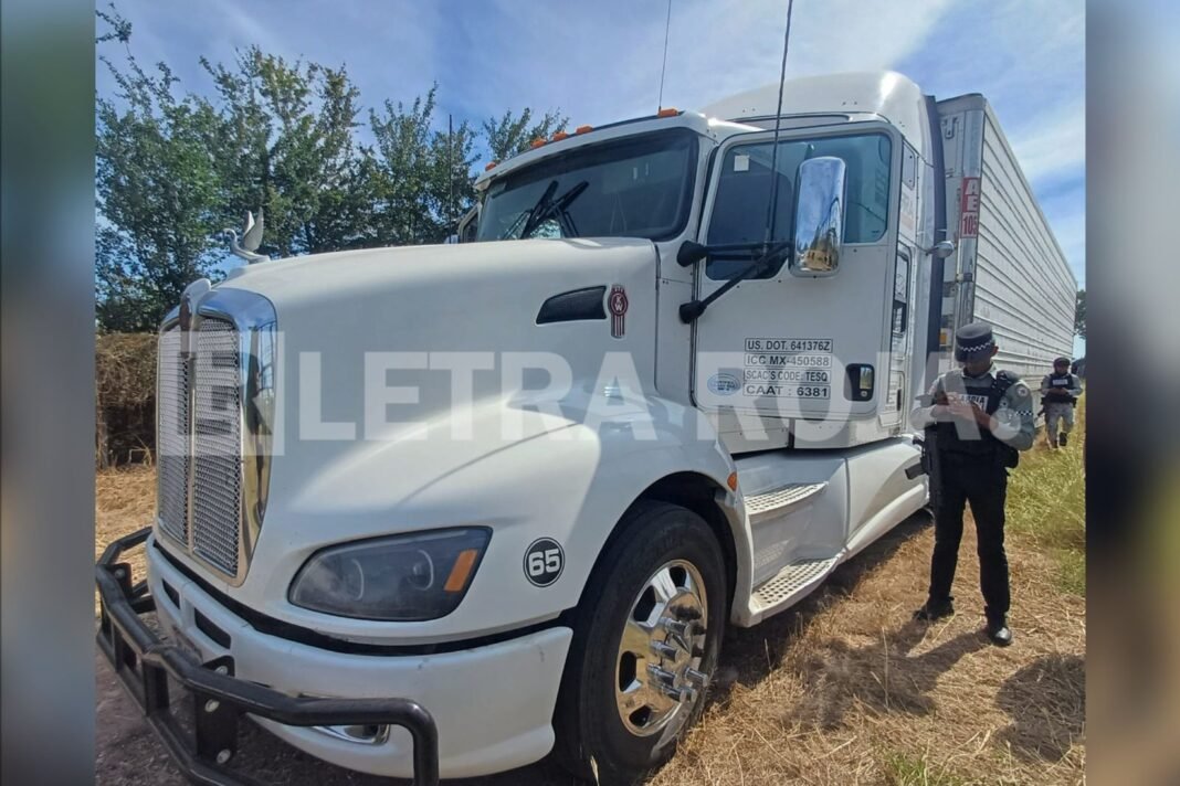 El tractocamión, cargado con semilla de maíz, fue localizado detrás de la empresa Prinsa tras perderse comunicación con el operador.