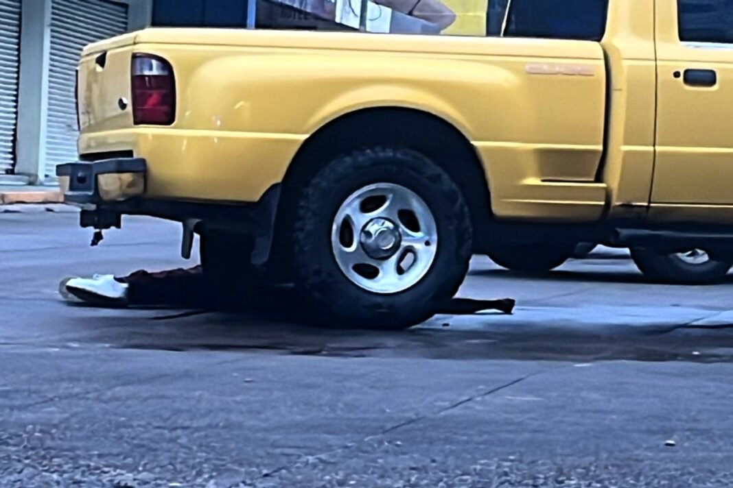 La víctima, aún no identificada, quedó sin vida a un costado de una camioneta amarilla. Vestía pantalón color tinto, playera negra y tenis blancos.