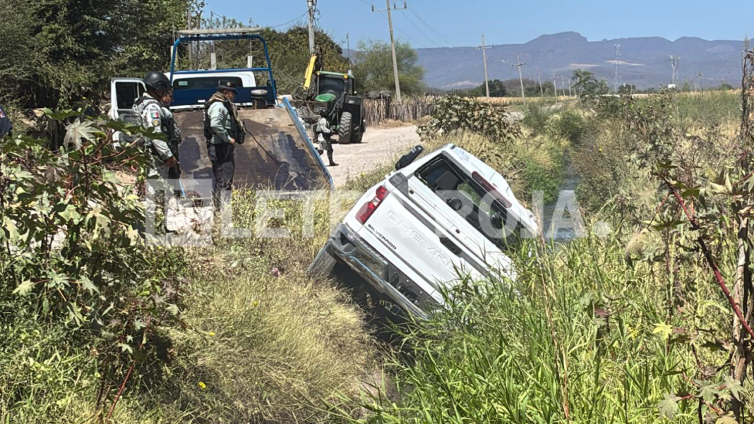 Mocorito, Sinaloa.- Un enfrentamiento armado registrado minutos antes del mediodía de este lunes dejó como saldo el aseguramiento de una camioneta que terminó dentro de un canal de riego, en la sindicatura de Pericos.